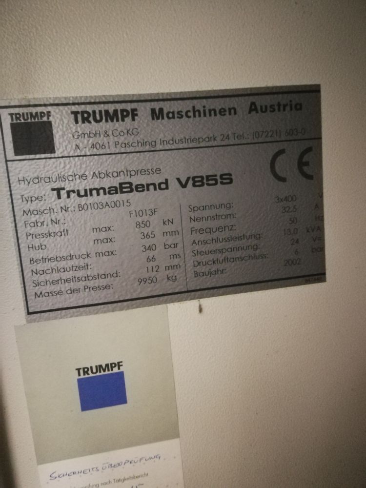 CNC Abkantpressen - CNC Abkantpresse Trumpf TrumaBend V85S Einbauhöhenvergrößerung 2550 mm x 85 to, Y1 Y2 X Z1 Z2 und R CNC Achsen + CNC Bombierung Steuerung Trumpf 2 D